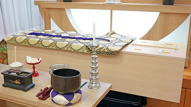 後飾りの祭壇を準備します。四十九日まで遺骨と白木の位牌を自宅に安置しておきます。