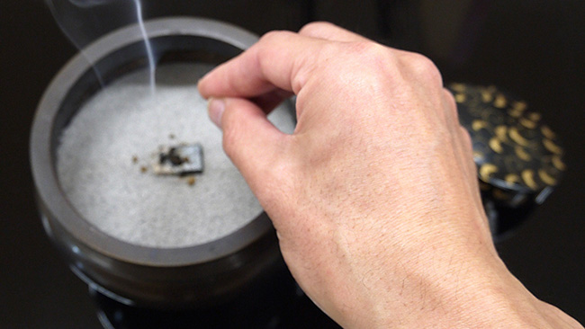 2人一組で一緒にお骨を拾って、骨壷にいれます。(※一部ご宗派を除く)